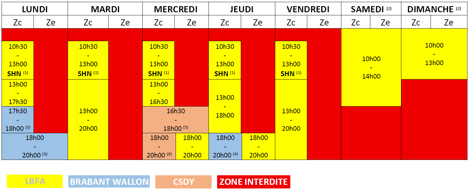 (3) (4) (5) (6) En dehors des périodes d’exclusivité, ces plages horaires sont LBFA.